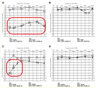 병력 청취 및 이경 검사를 통해 청력 감소를 유발할 만한 기타 원인을 배제한다.