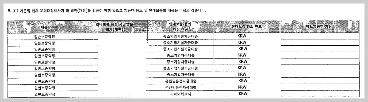 | > 연대보증 등이 없는 경우의 예상차입이자율은 별도로 은행에 요청해야함. |