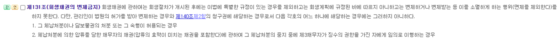 1. 회생채무 기간 중에는 관리인을 통한 법원의 허락없이 채무를 조기 변제할 수 없음.