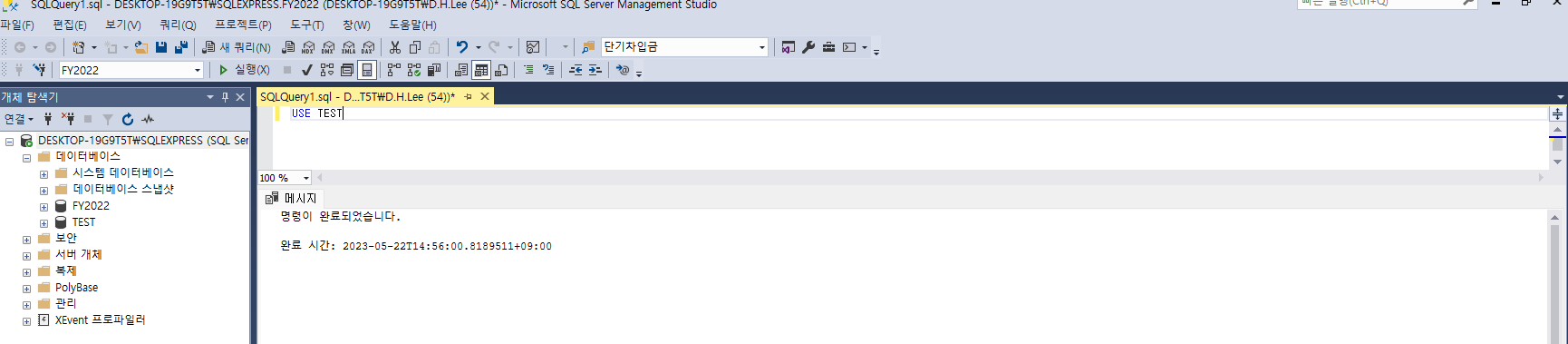 : use [database 명] >>> F5(실행버튼)